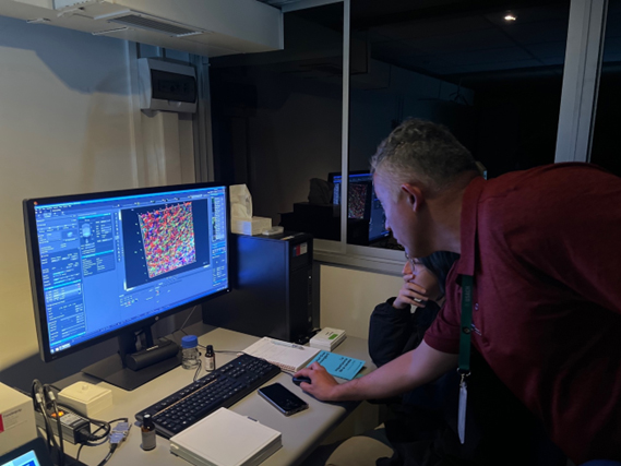El laboratorio es liderado por el Dr. Claudio Acuña, Académico Responsable, con la gestión técnica a cargo del Dr. Daniel Valdés, Encargado de Laboratorio, desde donde se articula su desarrollo científico y académico. El proyecto, financiado a través de fondos concursables de equipamiento científico mediano/mayor y cuya gestión administrativa y financiera es realizada por EFUSACH, ha permitido renovar y ampliar capacidades estratégicas para la investigación interdisciplinaria. En una primera etapa, la adjudicación de un microscopio confocal de última generación para la época e instalado en 2016 dotó de nuevas capacidades a la Universidad, fortaleciendo líneas de trabajo en ciencia de materiales, biología, alimentos, biotecnología y salud, entre otras. La microscopía confocal permite observar estructuras en distintos planos de una muestra y reconstruirlas en tres dimensiones, con contrastes muy superiores a la microscopía óptica convencional. Esta tecnología ha sido clave para incrementar la producción científica, la formación de estudiantes de pre y postgrado, y la colaboración con otras facultades, universidades nacionales, instituciones internacionales e incluso con el sector productivo y de defensa.