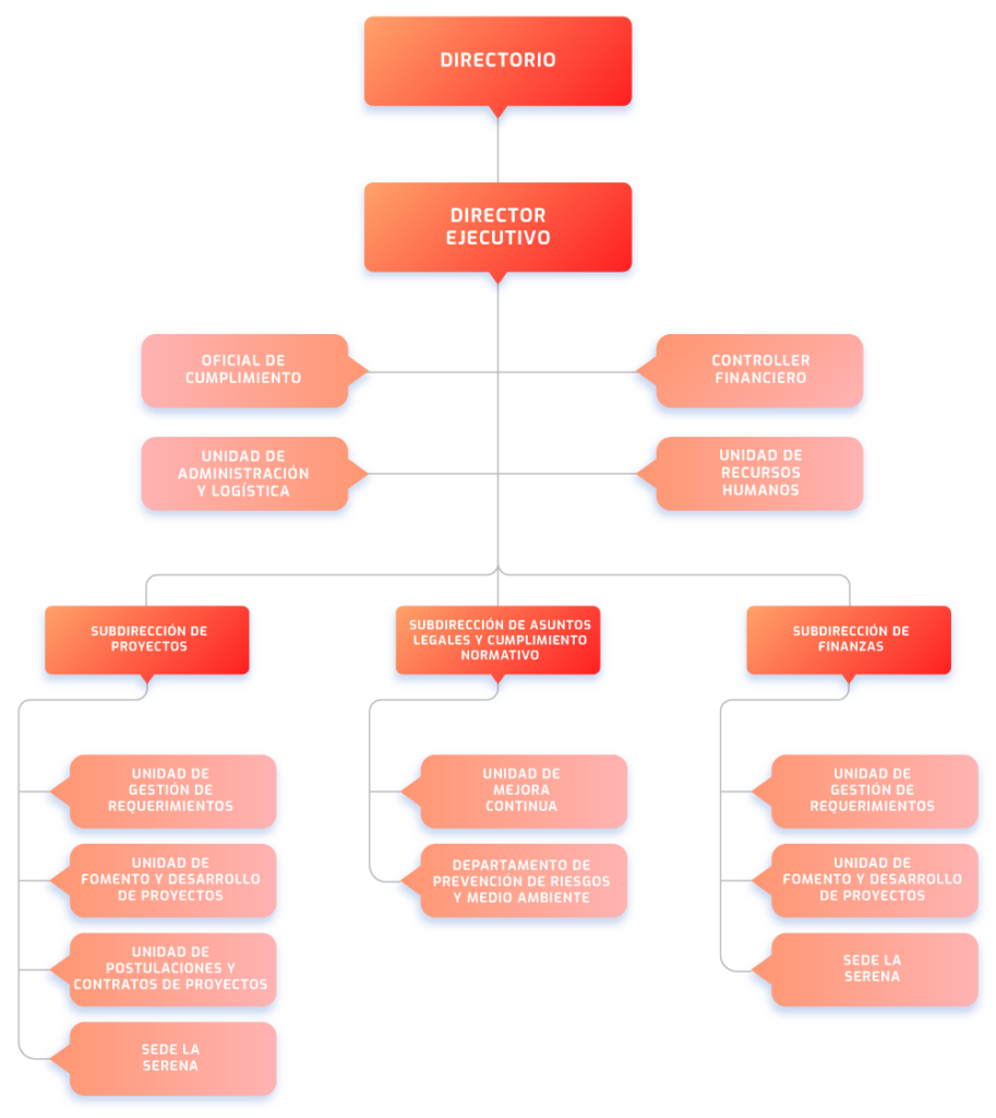 Servicio de Administración Financiera de Proyectos, mediante procesos de gestión, que involucran a las siguientes unidades: Dirección Ejecutiva, Gestión de Requerimientos, Postulaciones y Contratos de Proyectos, Calidad y Mejora Continua, Crédito; Cobranzas, Tesorería, Contabilidad y servicios de apoyo como Mantenimiento Informático, Recursos Humanos, Oficial de Cumplimiento y Compras, dirigidos a satisfacer las necesidades de nuestros clientes y partes interesadas.